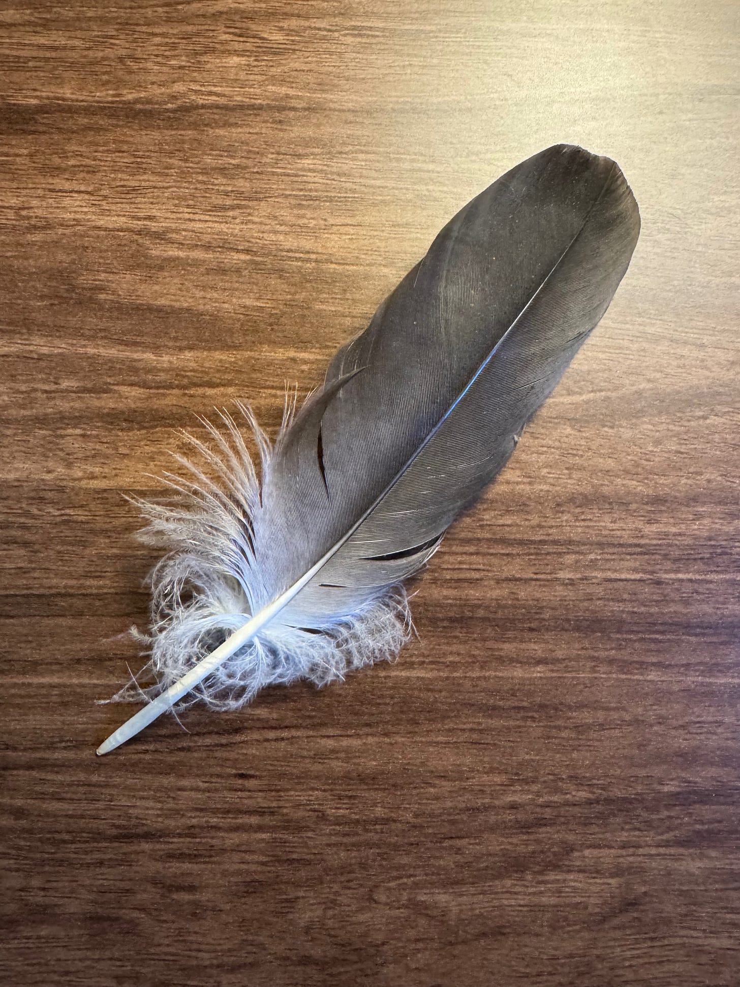 Standing on the edge of the lake, a bald eagle swoops down, no more than 30 feet from me to snag a dead salmon from the edge, leaving behind a large feather. The **third** time this summer an Eagle dropped in so close it felt as though I could reach out and touch it. This time, leaving a gift.